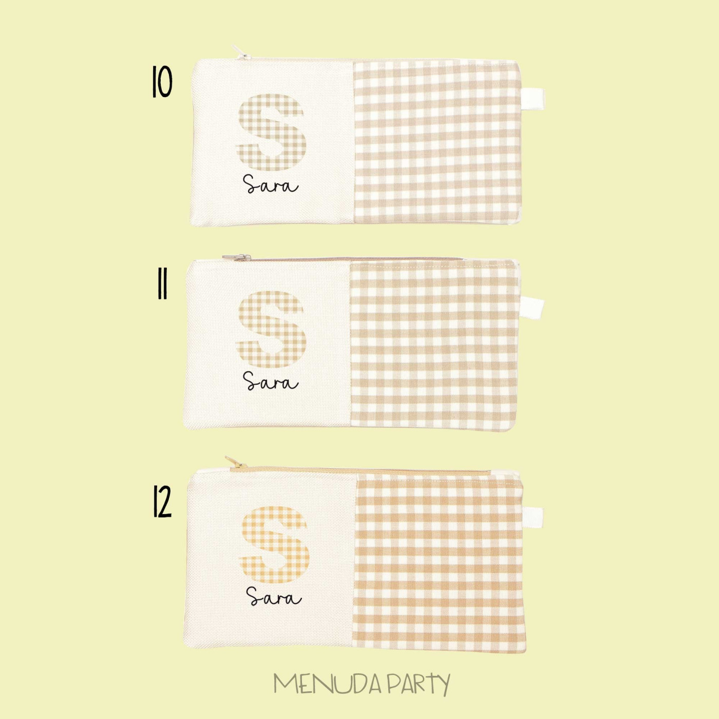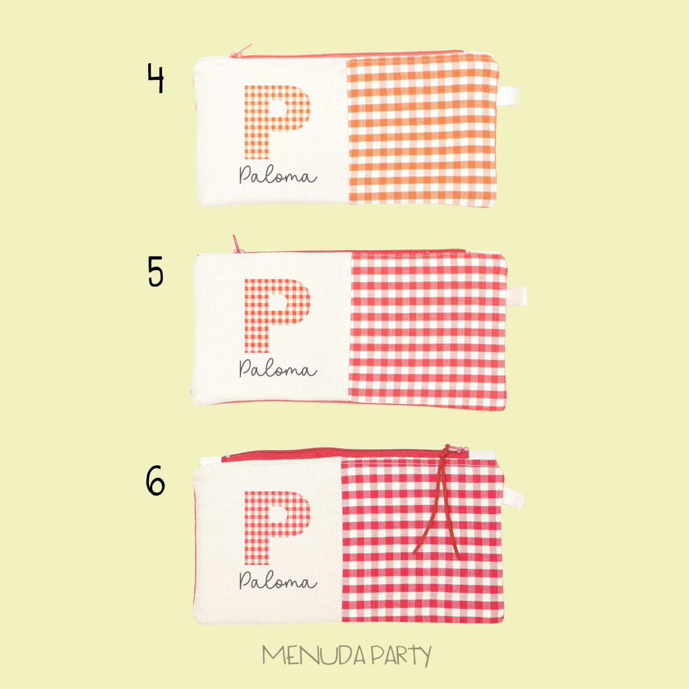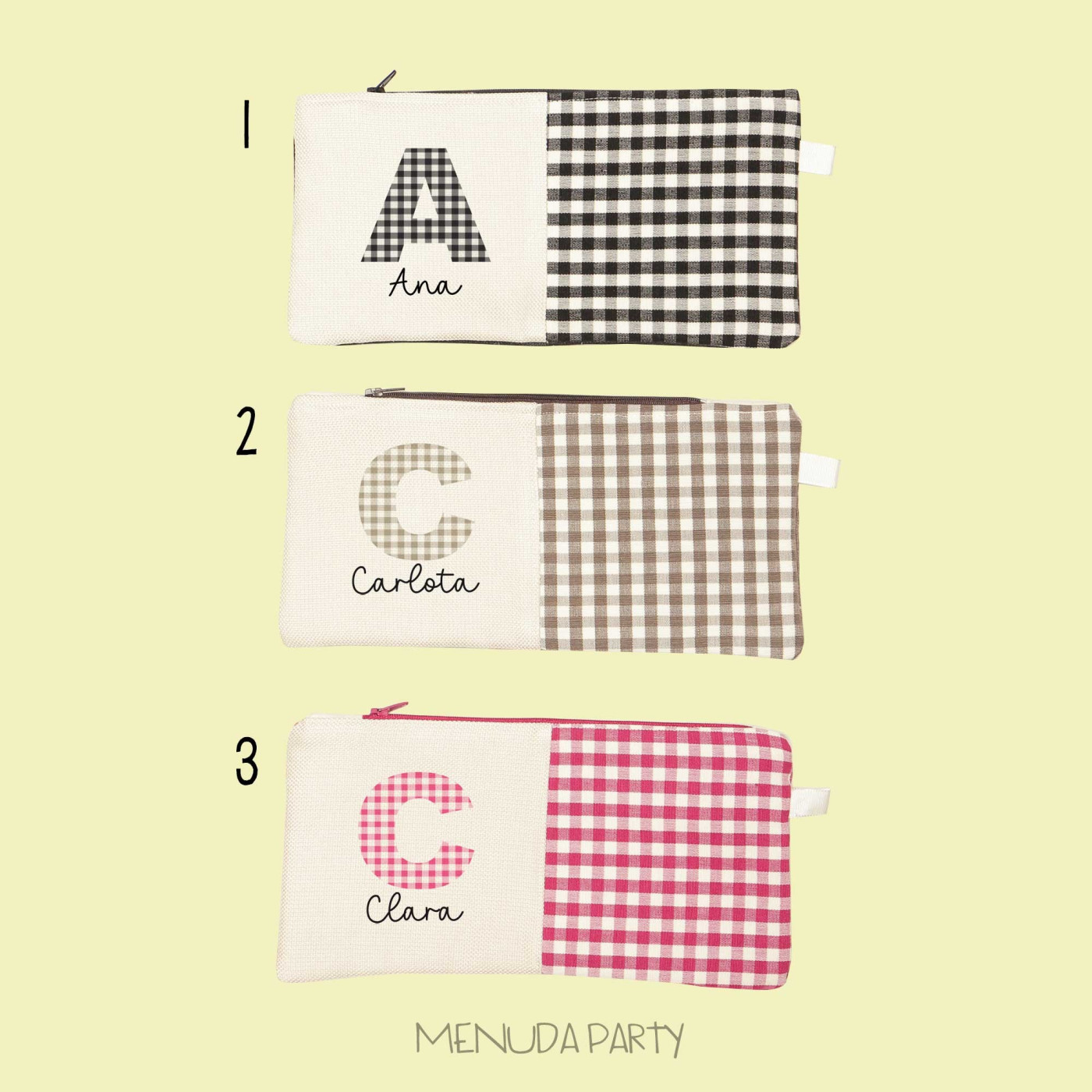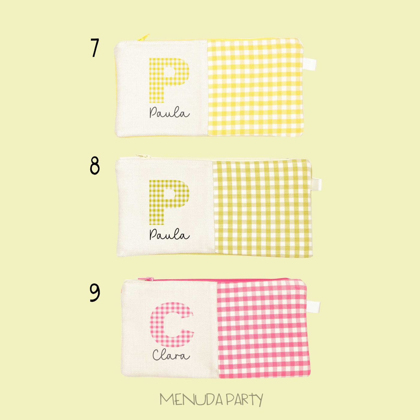 Estuche vichy personalizado con tu nombre, tienes muchos colores para elegir. Están hechos a mano. Tamaño 14x22cms
